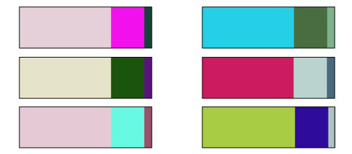결론부터 말하면, 색상이 조화롭게 보일 때 그 비율은 70:25:5다. 이런 비율로 배색된 공간을 보면 사람들은 모든 게 잘 어우러져 있다고 느낀다. 그리고 그 느낌은 곧 맛있어 보이거나 멋있어 보이는 이미지와 연결된다. 반대로 조화가 어긋나 있는 느낌은 맛없어 보이거나, 멋없어 보이는 이미지와 연결된다.